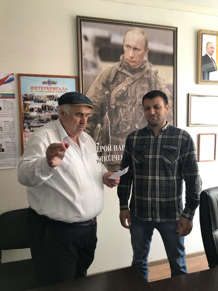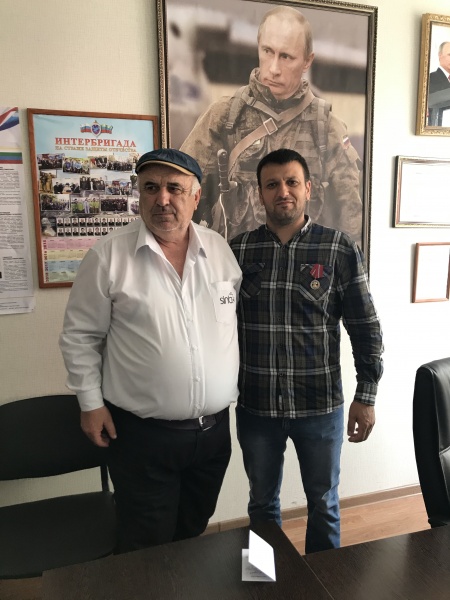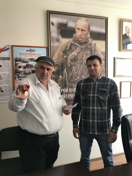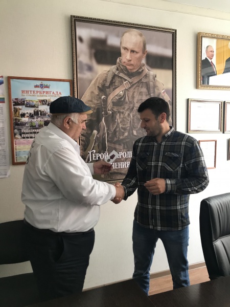 В штабе ДРОО "Народное ополчение 1999г. "Интербригада", была вручена награда "Участник боевых действий на Северном Кавказе", Магомедову Акаю Сулеймановичу. Награду вручил начальник штаба Абдулкадыров Ухума Гаджиевич.