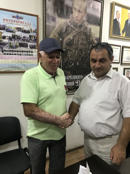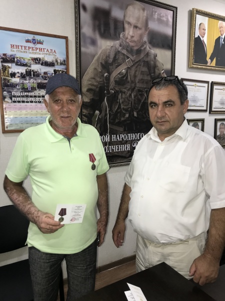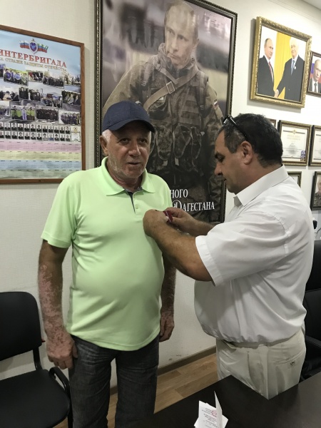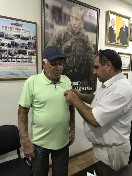 В штабе ДРОО "НО 1999 г. "Интербригада" был награждён медалью "Участник боевых действий на Северном Кавказе" Алиев Юсуп Серажутинович. Награду вручил командир ДРОО "НО 1999 г. "Интербригада" генерал-майор к/к. Муталимов Муталим Магомедович.