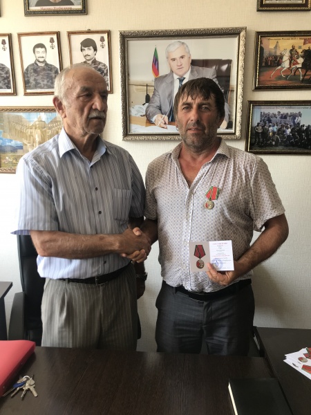 В штабе ДРОО "Народное ополчение 1999 г. "Интербригада" был награждён медалью "Слава Народу-Победителю" к 75-летию в Великой Отечественной войне 1941-1945 г.г. Курбанов Юнус Магомедович.