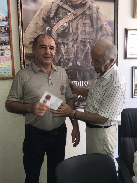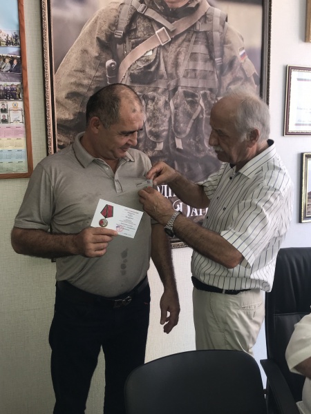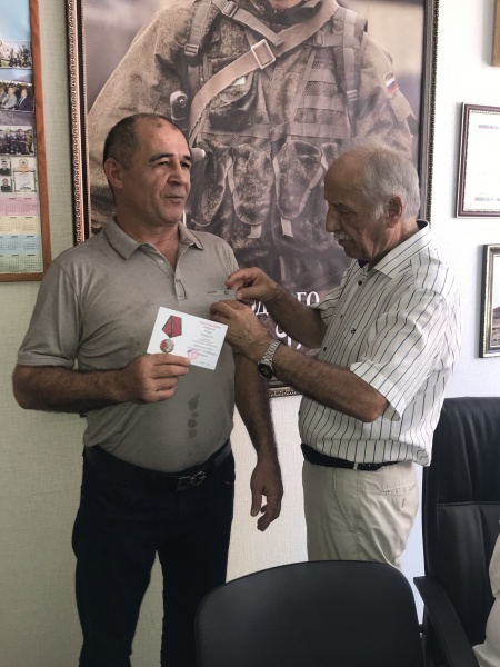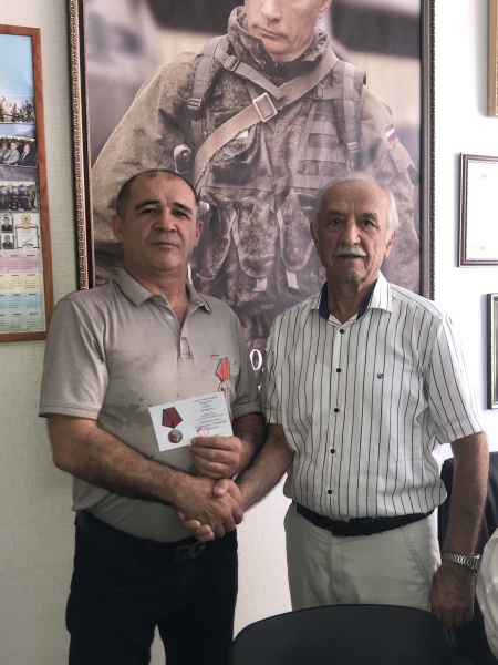 В штабе ДРОО "Народное ополчение 1999 г. "Интербригада" был награждён медалью "Слава Народу-Победителю" к 75-летию в Великой Отечественной войне 1941-1945 г.г. Муталимов Мухтар Магомедович.