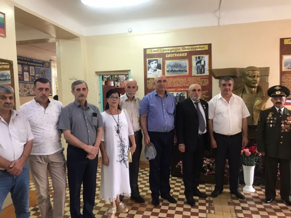 Присутствующие на встрече возложили цветы к бюсту Серажудина Алиева.