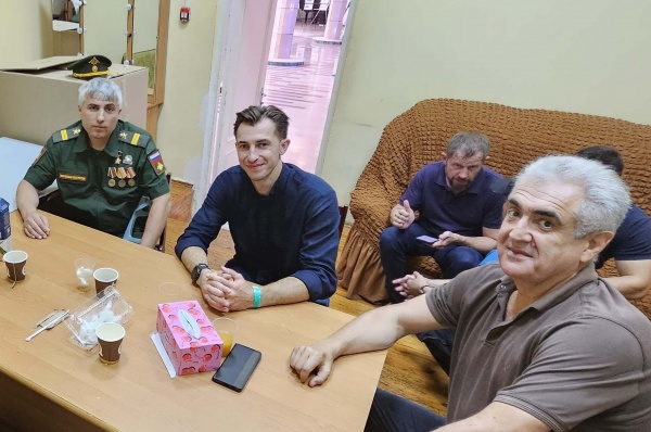 Она состоялась между ополченцами-ветеранами 1999-х и Афганских событий с участником фильма в рамках фестиваля «Время наших Героев» Казаковым Ильей Юрьевичем участником СВО, лейтенантом, позывной Морпех.