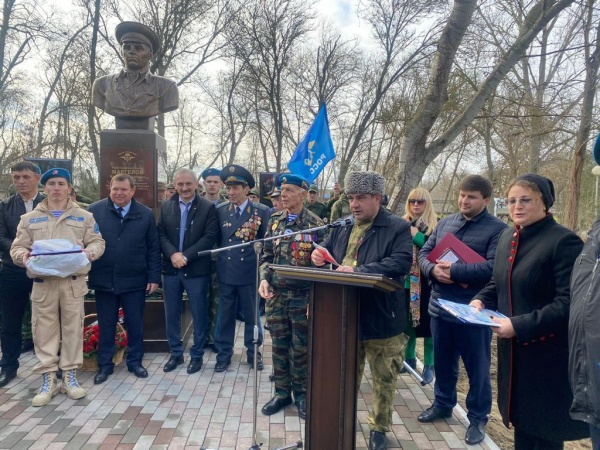Магарам Алиджанов вкратце рассказал об истории Воздушно-десантных войск, роли и значении самого Маргелова в организации, становлении ВДВ. И добавил, что именно Василий Филиппович добился, чтобы десантники носили тельняшки и голубые береты.